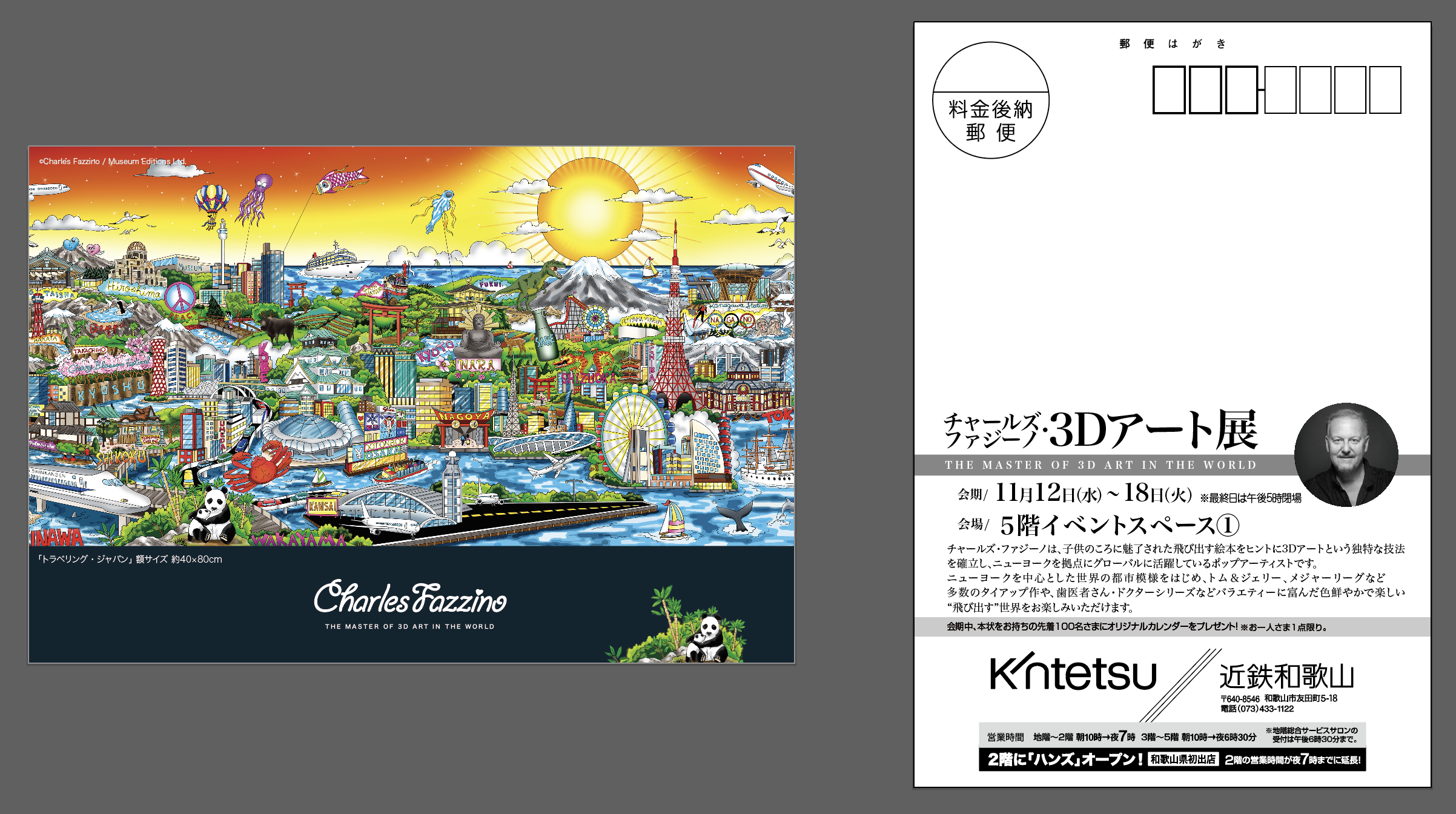 ハイスピリッツ&ユウが全国各地の百貨店にて主催する「チャールズ・ファジーノ 3Dアート展」11月12日(水)〜11月18日(火)の7日間、和歌山県 和歌山市にある和歌山近鉄 5階イベントスペース①にて開催されます。