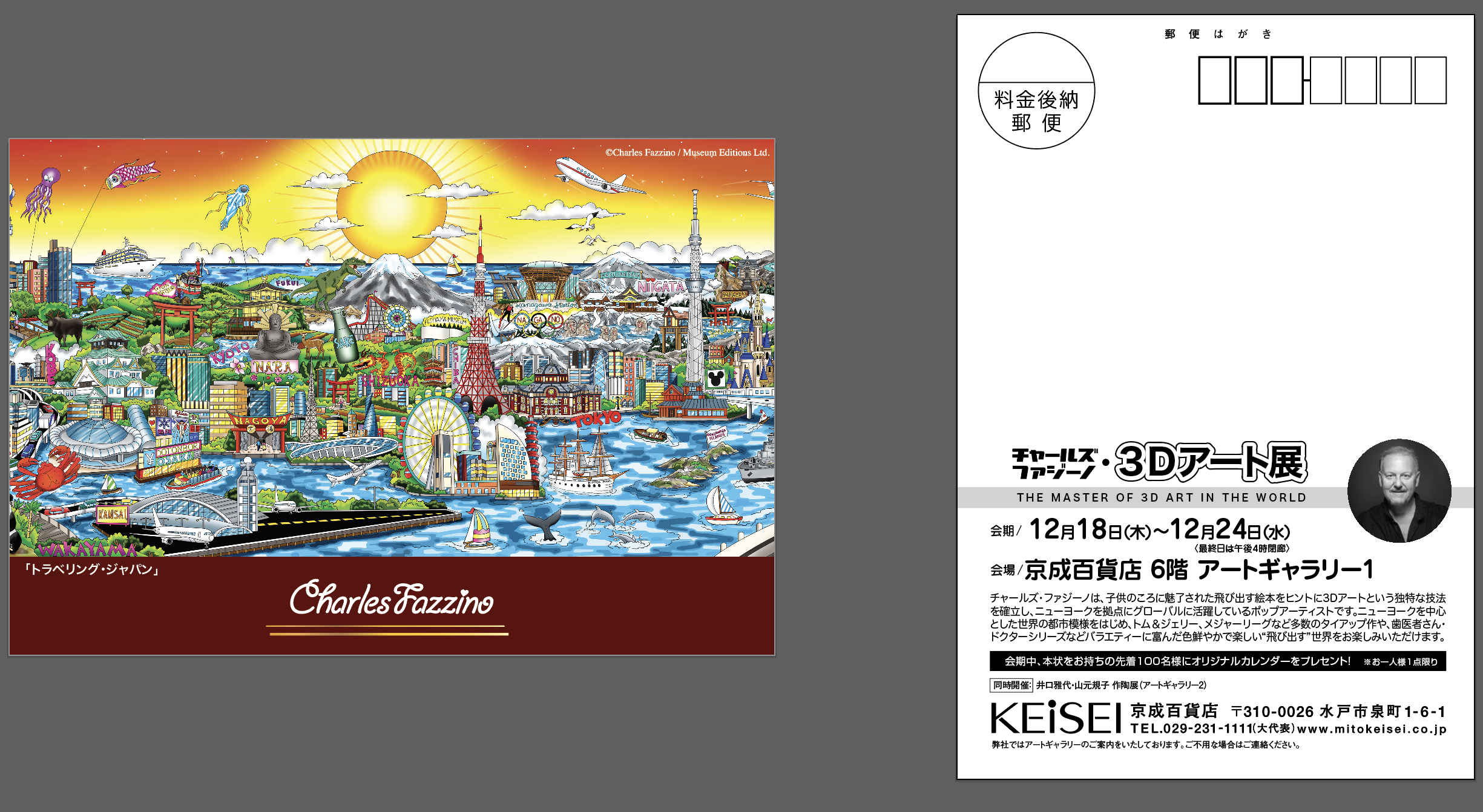ハイスピリッツ&ユウが全国各地の百貨店にて主催する「チャールズ・ファジーノ 3Dアート展」12月18日(木)〜12月24日(水)の7日間、茨城県 水戸市にある京成百貨店 6階 アートギャラリー1にて開催されます。