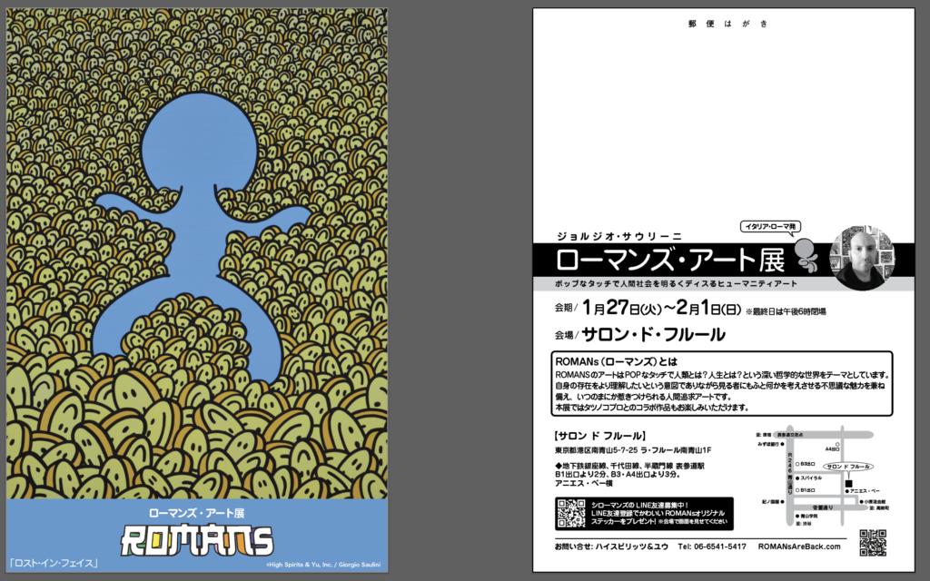 歴史的に有名なカメオ彫刻家である、芸術一家サウリーニ家の7代目として生まれたイタリアン・アーティスト、ジョルジオ・サウリーニが手がけるアート・キャラクター&ブランド『ROMANs (ローマンズ)』のアート展です。