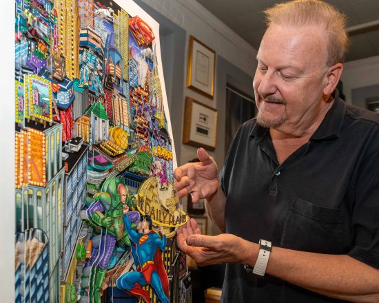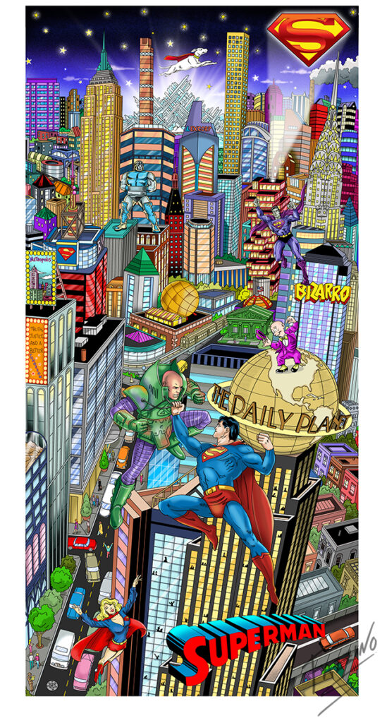 「数年前に『Superman Saves the Day』という作品を制作しましたが、とても楽しい体験で、子どもの頃に大好きだったDCコミックスのヒーローをアートの中で再び探検しているような気持ちになれました。