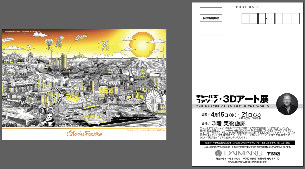 お近くに御用の方や興味がある方は、大丸下関店 3階 美術画廊まで足を運んでいただき、ぜひこの機会にチャールズ・ファジーノ3Dアートの世界を体験してみてください!